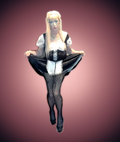 Feminization is achieved via cross-dressing,where the bitch is dressed in female,ranging from just wearing female panties to being fully dressed,including make-up,hairdress and nail polish.