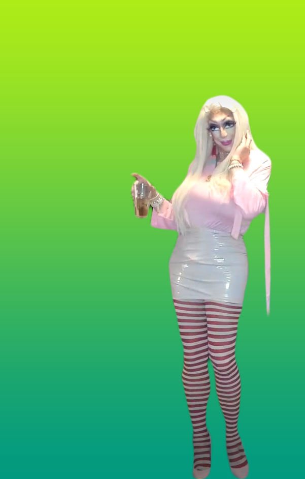 You’d gone to her house for a drink and she sat you down,dressed you and did your make up,all this while You were playing with her hard cock!